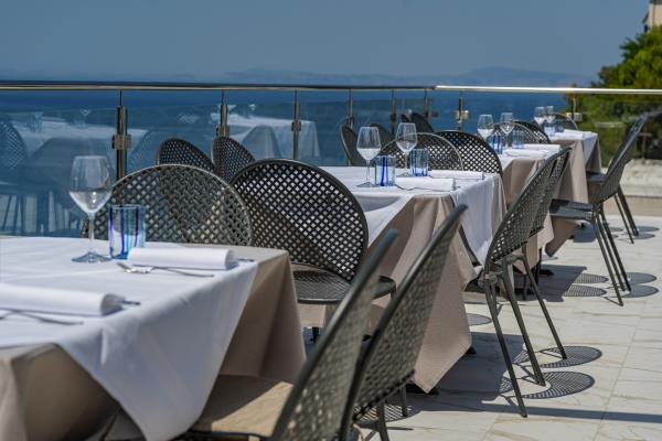 The guests can lunch, dine and organize banquets on the terrace, enjoying a comfortable and refined location with sea view, or in the panoramic dinner rooms with a fine design inspired by Contemporary Déco.